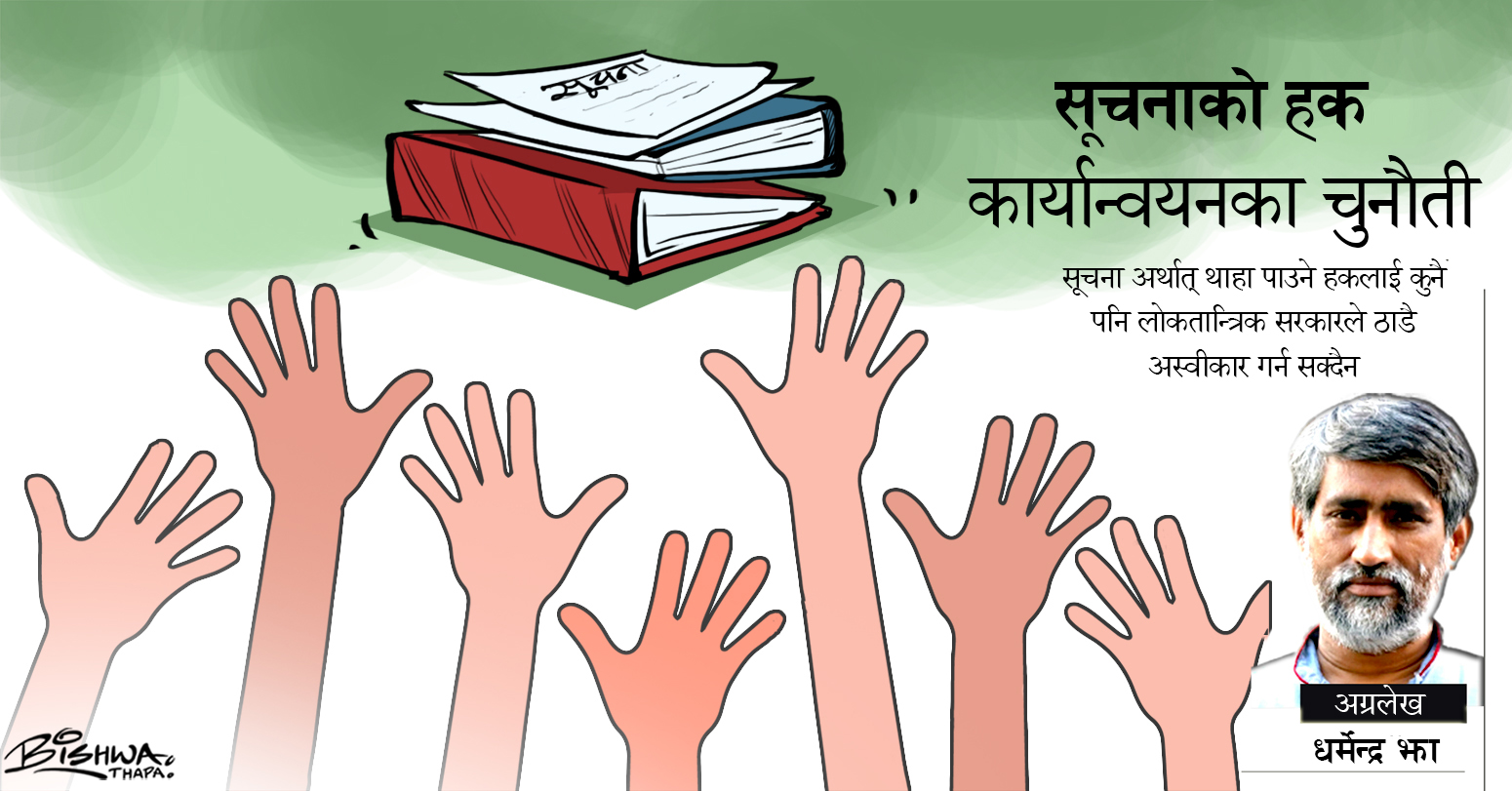 सूचना अर्थात् थाहा पाउने हकलाई कुनै पनि लोकतान्त्रिक सरकारले ठाडै अस्वीकार गर्न सक्दैन