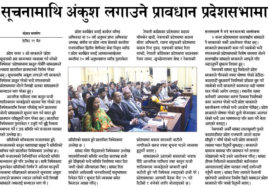 सूचानामाथि अंकुश लगाउने प्रावधान प्रदेशसभामा
