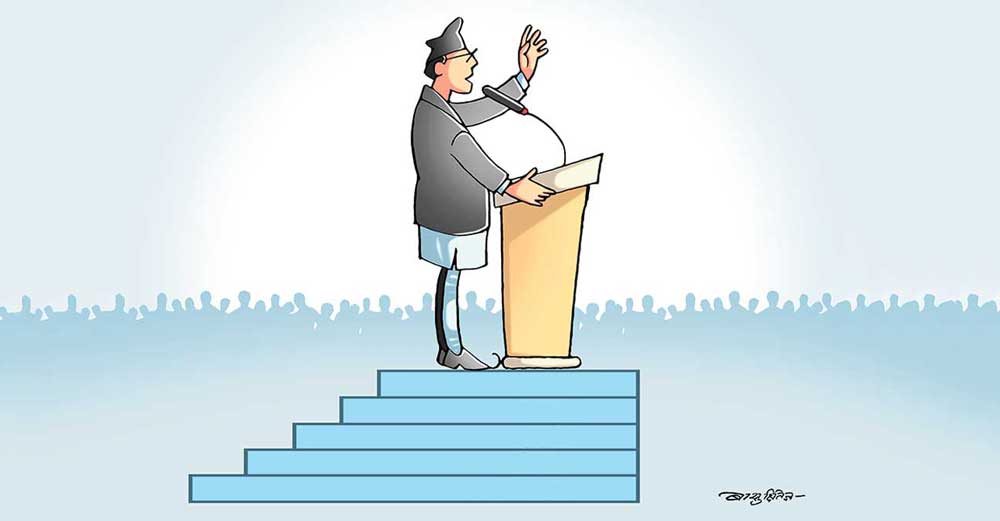 कर्मचारी हुन् वा शिक्षक, प्राध्यापक हुन् वा कलाकार, पत्रकार हुन् वा कानुन व्यवसायी, बुद्धिजीवी हुन् वा व्यापारी, श्रमिक हुन् वा उद्योगपति, एनजीओ हुन् कि नागरिक समाज आदि सबै दलीय हिसाबले विभाजित छन्, आफ्ना पक्षका दलले जेजसो गरे पनि अन्ध–समर्थन गर्ने र अर्को पक्षको कुरामा अरिंगालजस्तो जाइलाग्ने ! यस प्रक्रियाको अन्त्य जरुरी छ, सदाचारलाई बलियो बनाउन ।