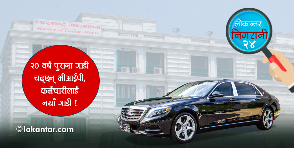 काठमाडौं – राष्ट्रपतिदेखि प्रधानमन्त्रीसम्मले परराष्ट्र मन्त्रालयले उपलब्ध गराएका २० वर्ष पुराना गाडी चढ्ने गरेको पाइएको छ । सार्क शिखर सम्मेलनका लागि खरिद गरिएका मर्सिडिज बुलेट प्रूफ गाडी राष्ट्रपति र प्रधानमन्त्री कार्यालयले प्रयोग गरिरहेका छन् ।
