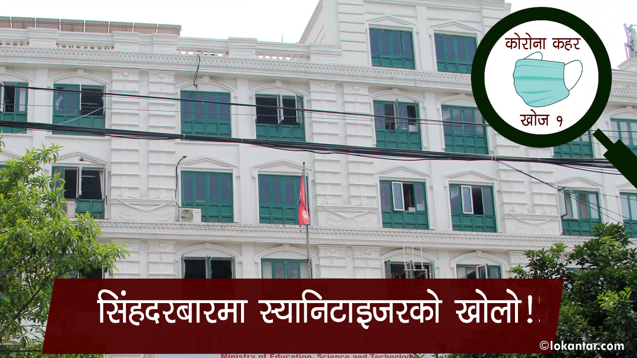 सिंहदरबारका अधिकांश मन्त्रालयले स्ट्यान्डसहित कार्यालयको गेटमा स्यानिटाइजर राखेका छन् ।
