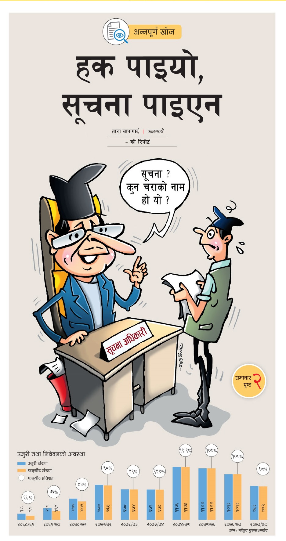 लोकतान्त्रिक पद्धतिमा सूचनाको हक नागरिकको अधिकार मानिन्छ। २०६४ सालमा सूचनाको हक आए पनि यतिका वर्षसम्म पनि नागरिकले सहज रूपमा सूचना पाउन सकेका छैनन्। एउटा सूचनाका लागि महिनौंसम्म कार्यालय धाउनुपर्ने बाध्यतामा छन्। सूचना नपाएकै कारण आयोगमा पुनरावेदन तथा उजुरी गर्नेको संख्या हरेक वर्ष बढेको आयोगको तथ्यांकले देखाउँछ। नागरिक सचेत बन्दै सूचना माग्ने क्रम बढेको र सूचना नपाएकै कारण उजुरी दिने संख्या पनि धेरै रहेको प्रमुख आयुक्त महेन्द्रमान गुरुङ बताउँछन्।