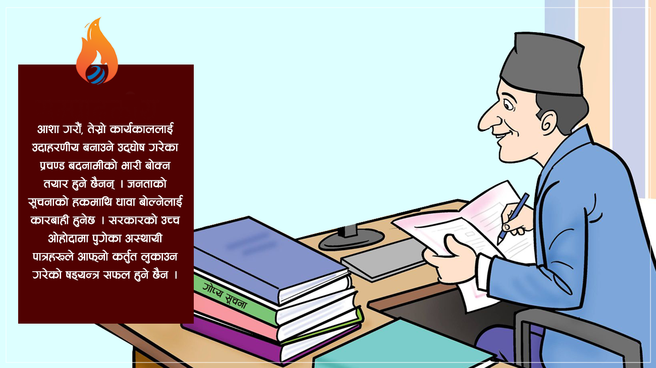 तेस्रो कार्यकाललाई उदाहरणीय बनाउने उद्घोष गरेका प्रचण्ड बदनामीको भारी बोक्न तयार हुने छैनन् । आशा गरौं, जनताको सूचनाको हकमाथि धावा बोल्नेलाई कारबाही हुनेछ ।